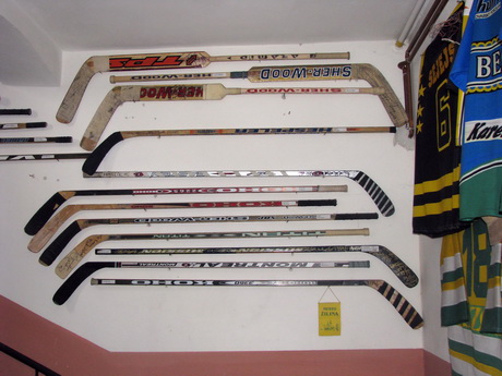 7. 11. 2008 | Jan ČechKaždý muž je od dávnověku lovcem. Má tendenci lovit a shromažďovat ulovené kousky. V dnešní době se vášeň lovit přeměnila. Stala se zní jiná touha a té se říká sběratelství. Někdo shromažďuje známky nebo pohlednice. Karel Procházka miluje hokej a tak začal sbírat hokejky. Jeho sbírka čítá na čtyři desítky holí, které jsou i s osobním věnováním světových hokejových superstar. Kromě extraligových hráčů obsahuje sbírka Karla Procházky staršího i hvězdy NHL. „Podle mého ta nejcennější je hůl Paula Kariyi. Tu mi kdysi přivezla paní Vokounová. Když jí převážela letadlem, tak jí v půlce přeřízla, tak aby se jí vešla do kufru. Brankář ‚Mattonky‘ Míra Knížek mi jí pak slepoval dohromady,“ popsal Karel Procházka cestu hole ke sběrateli. V krátkém přestávkovém seriálu o hokejovém sběratelství se tedy tentokrát věnujeme hokejkám a hráčským dresům.