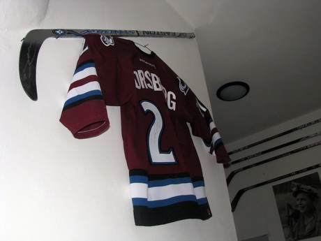 Netřeba představovat - dres švédské legendy Petera Forsberga a jeho hůl.