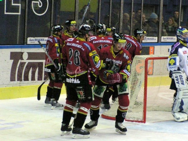 Branky a nahrávky: 13. Hurtaj (Dvořák), 15. Milan Procházka (Skuhravý, Alinč), 35. Selingr (Pech) - 46. Huml (Zeman, Michael Frolík). Rozhodčí: Husička - Cambal, Unzeitig. Vyloučení: 4:7, navíc Němec trest ve hře - Mich. Frolík 5 minut a do konce utkání, Gardoň 10 minut. Využití: 0:1. Diváci: 2830. Průběh utkání: 3:0, 3:1.