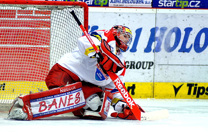 Krátce po záhájení třetí třetiny našel Pech v brankovišti Kumstáta, jehož teč ale skončila nad. Krátce poté fauloval Pecha Jank, a Energie měla k dispozici početní výhodu. Kantor si na nedostatek práce rozhodně nemohl stěžovat, dokázal ale udržet karlovarské střelce na uzdě. K vidění byl zajímavý, oboustraně útočný hokej, na ledě ale v těchto chvílích dominovali oba muži v maskách.