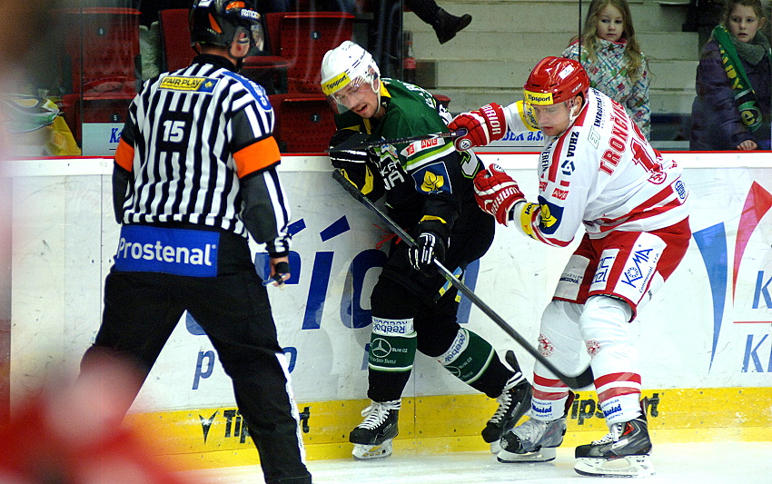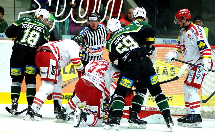 Branky a nahrávky: 19. Bartek (Balán, Deyl), 30. Bartek (Duda), 42. V. Tomeček (R. Hruška, J. Tomeček), 58. Duda (Balán), 60. Duda (Balán) – 2. Š. Ružička (Plíhal, D. Nosek), 25. Hrabal (Hrňa, Plíhal), 31. Dravecký (M. Růžička, Žejdl). Rozhodčí: Pešina, Horák – Svoboda, Lhotský. Vyloučení: 6:6. Využití: 1:1. Diváci: 2302. Střely na branku: 35:24. Průběh utkání: 0:1, 1:1, 1:2, 2:2, 2:3, 5:3.